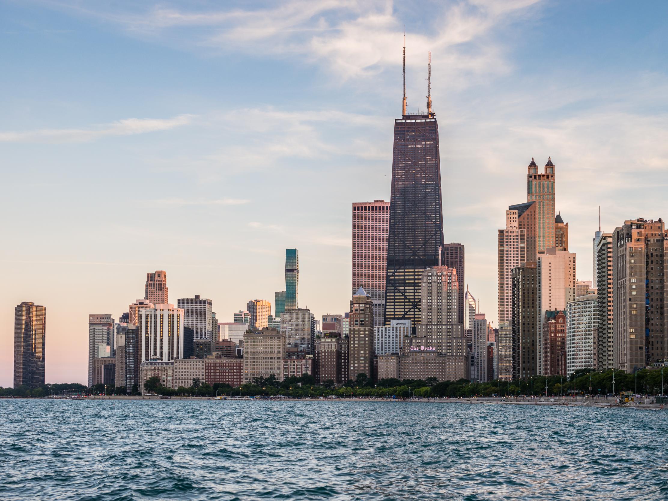 Night-city City Buildings Lights Water Reflection Black-and-white