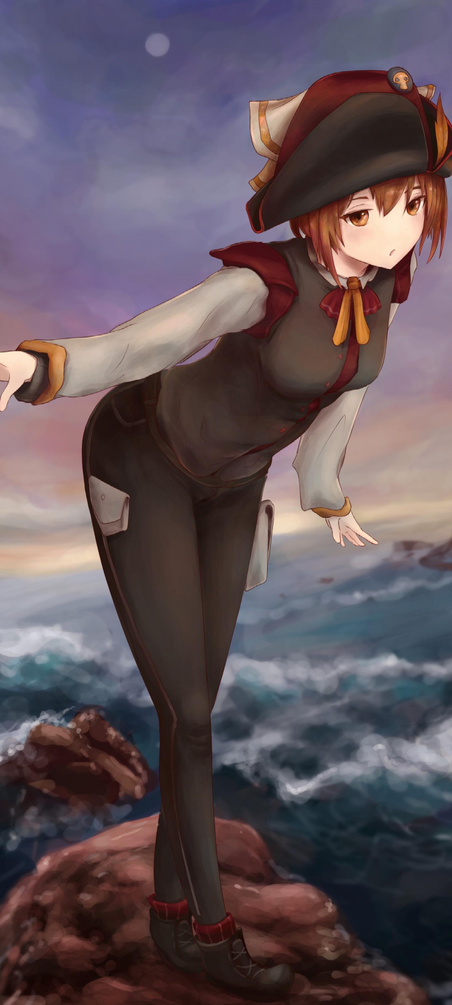 Girl Glance Embankment View Anime Art