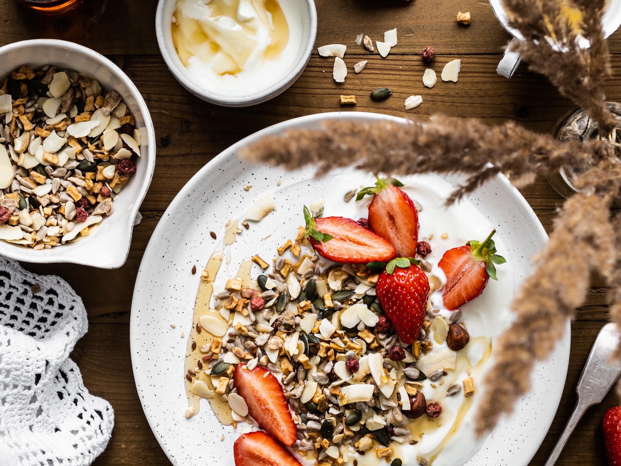 Strawberries Berries Muesli Plate Breakfast Aesthetics