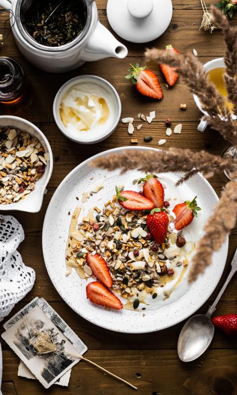Strawberries Berries Muesli Plate Breakfast Aesthetics