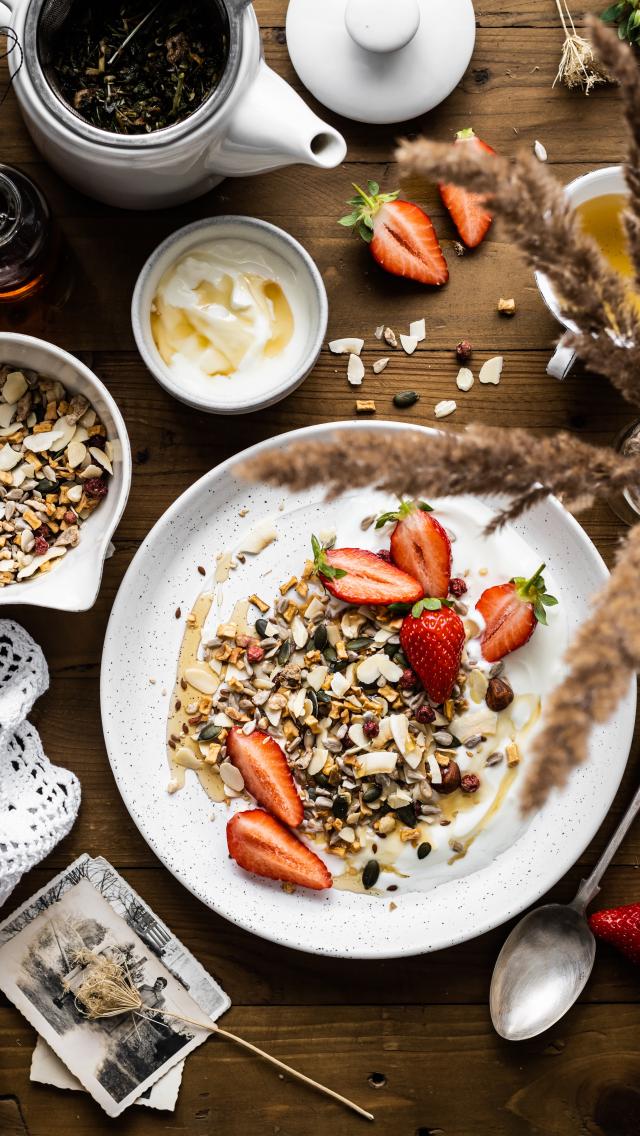 Strawberries Berries Muesli Plate Breakfast Aesthetics